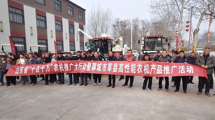 在新绿如茵,春耕夏耘的时节,山东省聊城市莘县农业农村局为进一步夯实农机装备建设,推进农作物春管,迎接夏粮收获,3月11日在该县燕塔街道办事处举办了高性能农机产品推广活动。县农业农村局相关负责同志,农机合作社社长、种粮大户、农机操作员及农机技术人员等100余人参加活动。