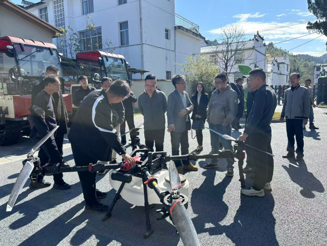 活动现场,农机手对开沟施肥覆土一体机、无人机植保及吊运设备等新型农机具进行了现场作业演示,这些“钢铁侠”在丘陵茶垄间灵活穿梭,精准高效地完成耕作、撒药、运输等作业,其适配丘陵茶区的先进性能,引得参会人员纷纷围拢上前,详细询问机械操作细节、农机购置补贴政策及市场价格,不少代表表达了强烈的采购意向。
