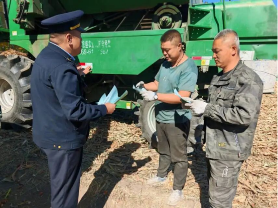 检查过程中,执法大队同步开展了农机安全普法宣传。通过发放《农机安全操作手册》宣传单、现场讲解典型事故案例等形式,向农机手详细解读违法操作的危害及相关法律法规,引导农机手自觉规范操作、安全作业,切实增强他们的安全守法意识,从思想根源筑牢安全防线。