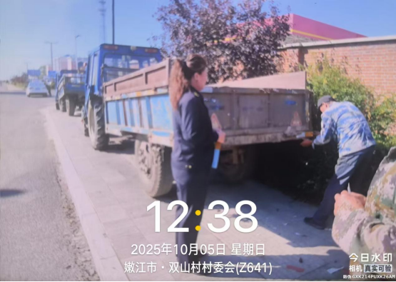 存在隐患:发现双山镇农机手李某驾驶的拖拉机车斗未粘贴反光标识。