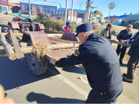 第一组检查伊拉哈镇交通主干道及田间作业区,并召开“两节”期间农机安全工作会议,在镇域主要路口及作业路段开展日常巡查检查。