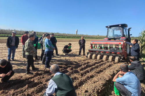 会上,小麦宽幅沟播机、玉米联合收获机、玉米茎穗兼收机三种机型现场依次作业演示;市级农机化专家、高级工程师张晔老师跟机逐一讲解。在播种环节,张晔老师结合长武土壤、播种习惯,从机具调试、墒情适配、播种深度、行距控制等方面重点讲授,现场测量播种均匀度与覆土厚度,对比传统播种与宽幅沟播的差异。在机收环节,围绕 “如何降低机收损耗率”,从收割机割台高度调整、行驶速度控制,到籽粒清选系统调试,逐项拆解操作要点,让在场群众直观认识到减损的经济效益。同时,还针对秸秆粉碎还田、玉米茎穗兼收打捆回收两种利用模式,分析不同机具的作业效率、成本投入与生态效益,指导农户根据种植规模与需求选择适配方案。