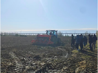现场演示的耙播一体播种机,采取驱动耙整地+可调节集成式排种器+播种口分体式单体仿形为主要技术路径,具有种床构建质量高、作物播种深度均匀、可播种作物多样的特点。现场作业的农机手表示:“这台机器通过调节播种辊的参数,可实现多种作物的播种。既可以调节播种辊的缝隙实现播种不同粒径的作物,又可以通过调节下种口的开闭适应不同作物的播种行距,操作简便高效。一天能播200多亩小麦,给农户们服务起来十分方便!”。