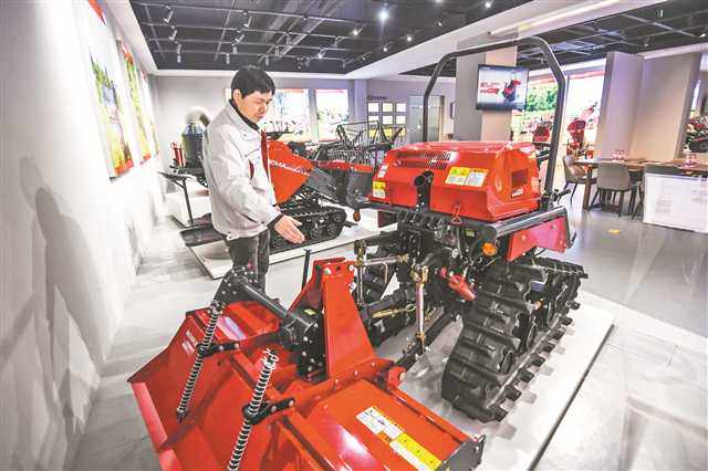 田园管理机、手扶式微耕机、乘坐式履带旋耕机……11月15日,记者走进位于江津珞璜工业园区的威马农机公司,展示大厅里摆放着各种农机。