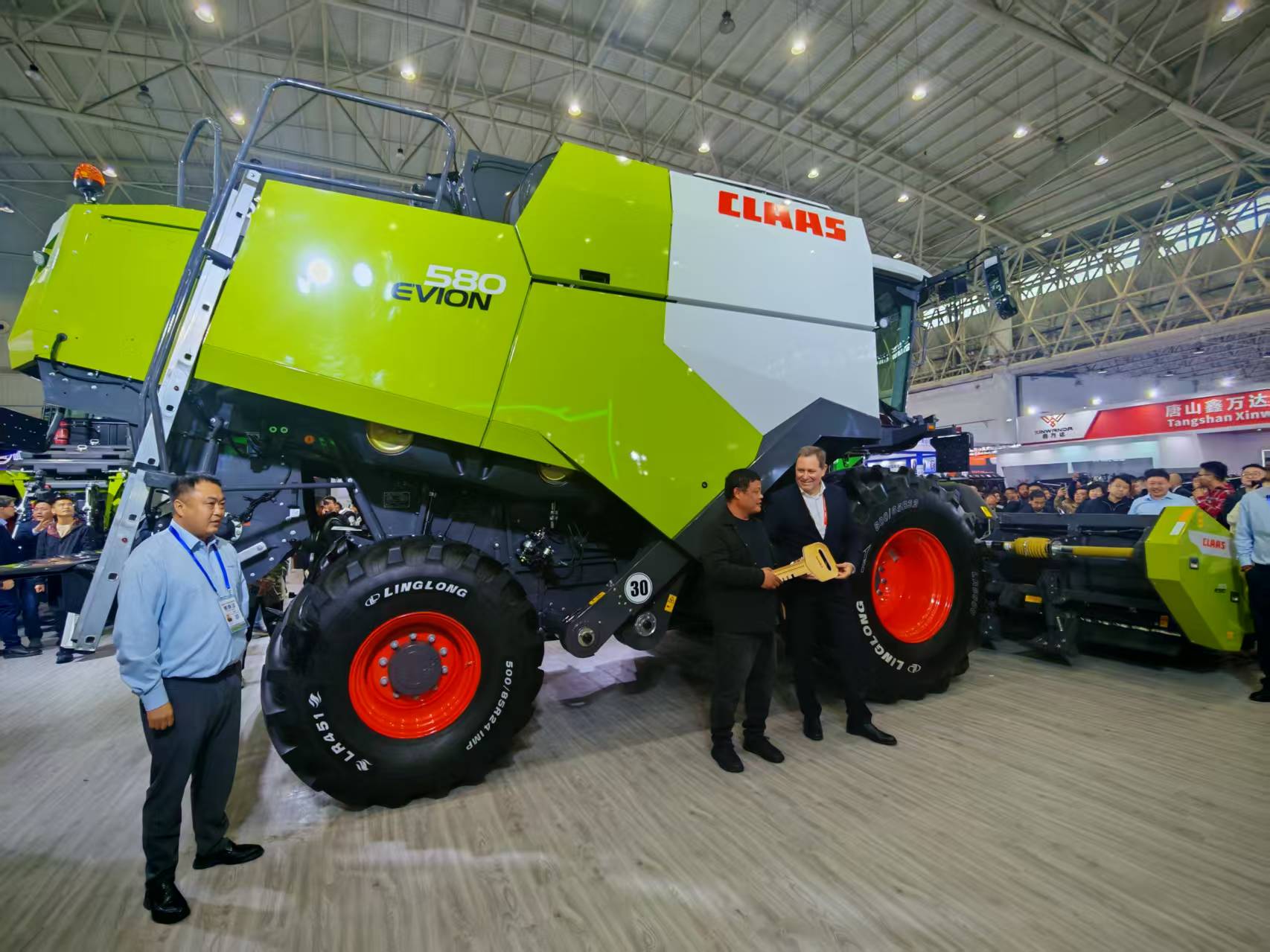 仪式现场,CLAAS中国还举行了EVION 580的首台交机仪式,并将新机交付给用户代表,彰显出国内高端农机用户对 EVION 580 的信任与认可,亦标志着这款凝聚CLAAS百年技术积淀与本土创新智慧的收获机正式从展会走向田间。