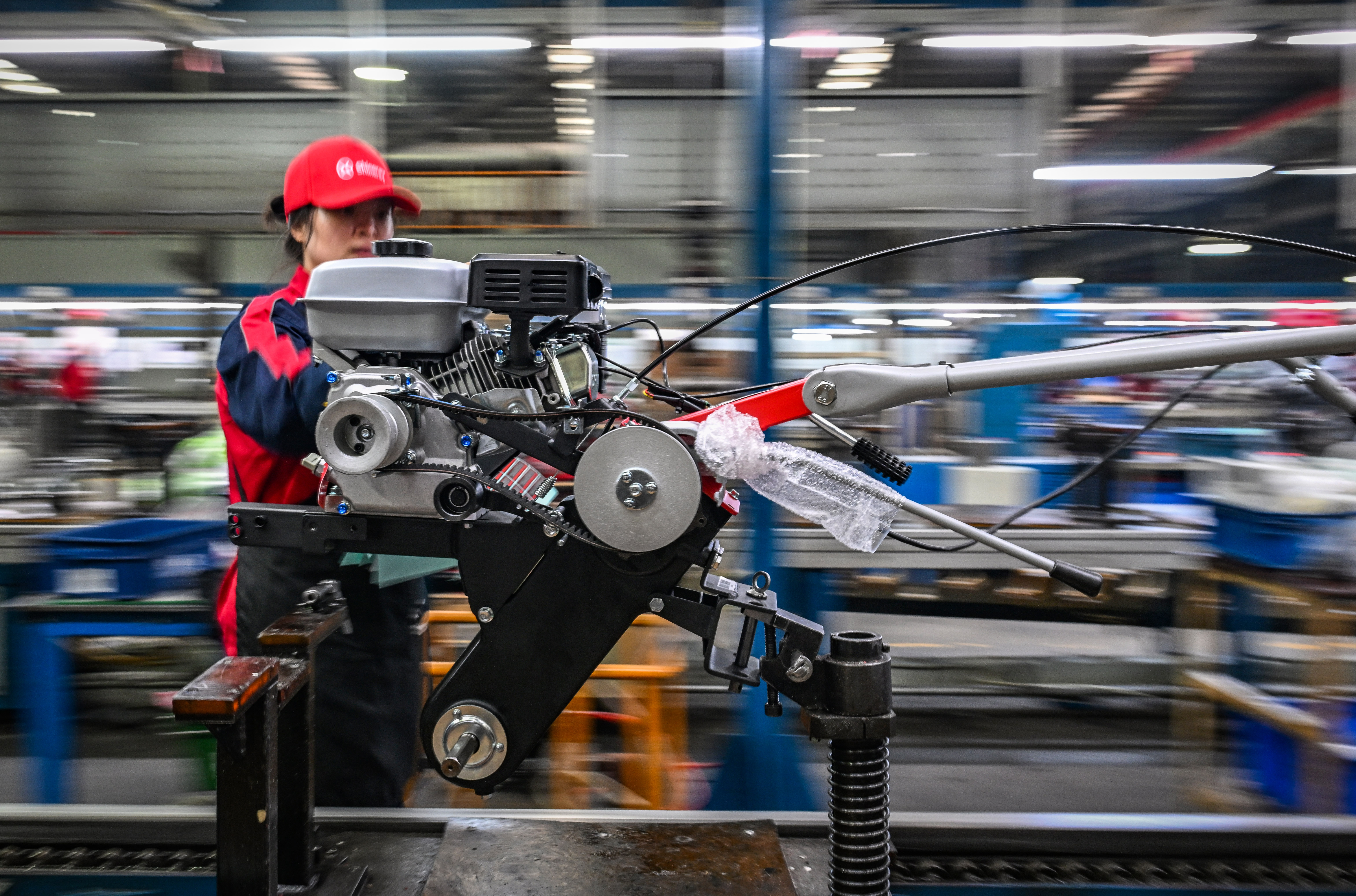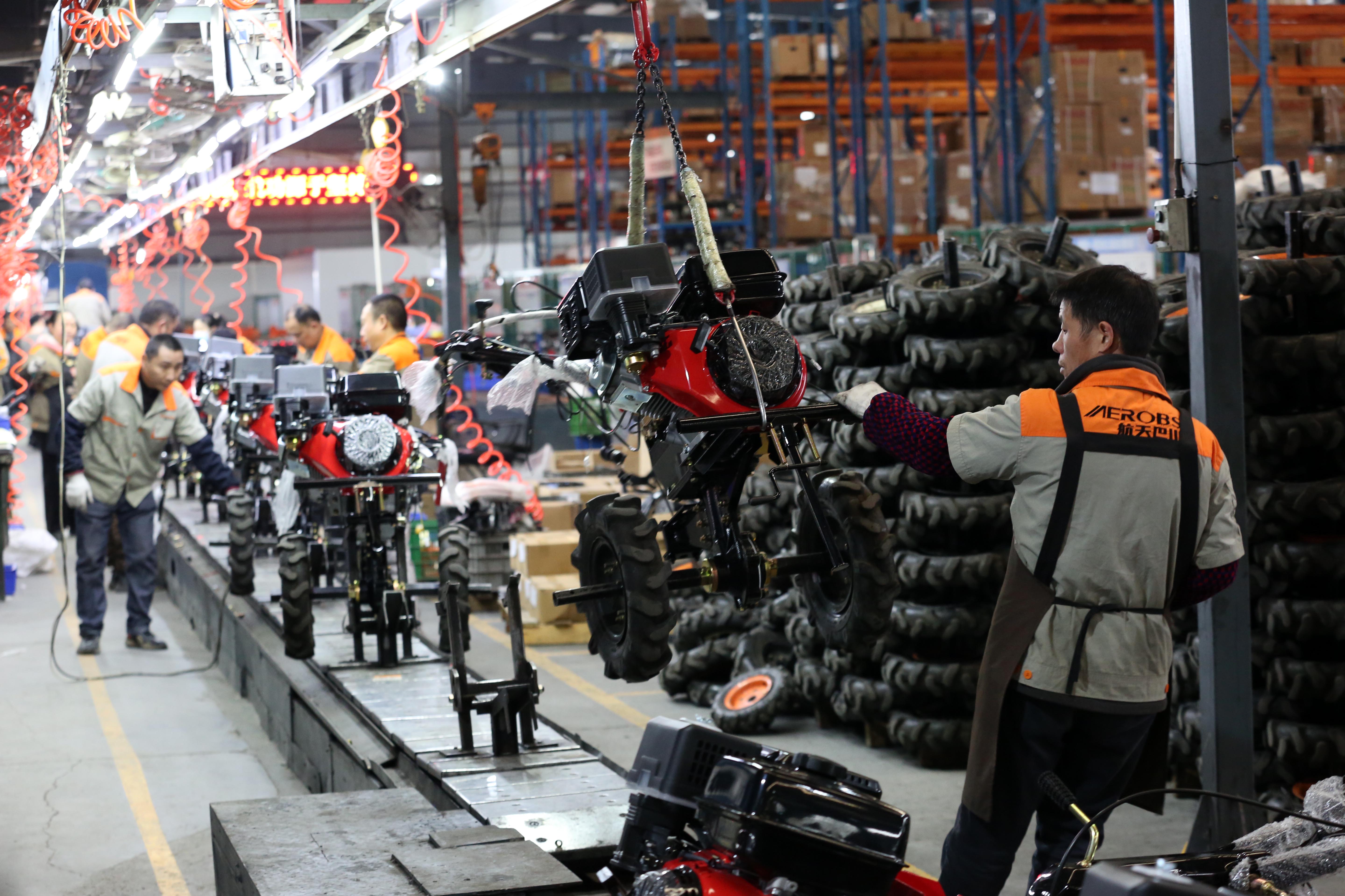 ▲位于巴南区的一家农机公司,工人在装配耕作机。通讯员 李攀 摄/视觉重庆