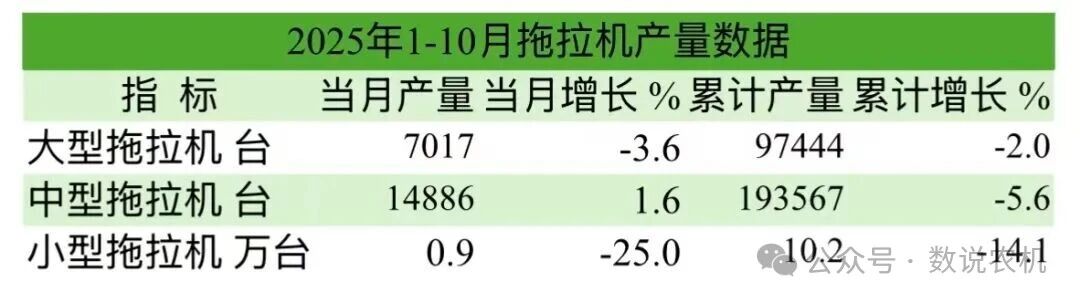 目前,2025年1-10月拖拉机数据都已发布,来进行一下分析对比。